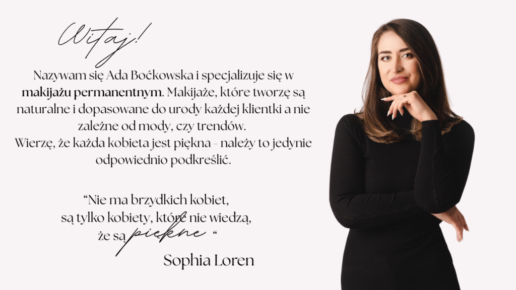 Nazywam się Ada Boćkowska, jestem linergistką z tytułem wicemistrzyni Polski w makijażu permanentnym w najwyższej kategorii Grand Master. Od lat tworzę naturalny makijaż permanentny w Warszawie, który podkreśla urodę, zamiast ją zmieniać.